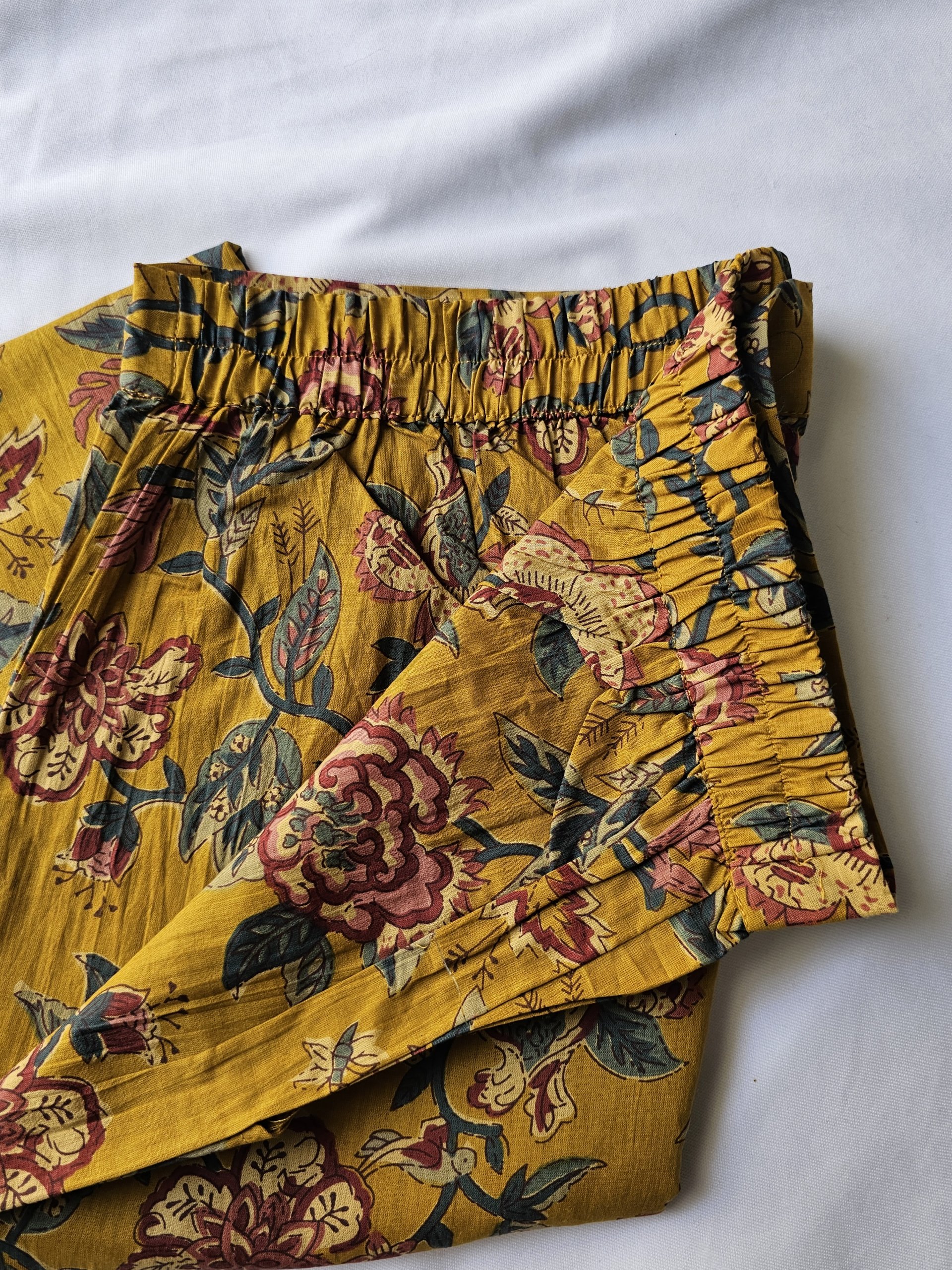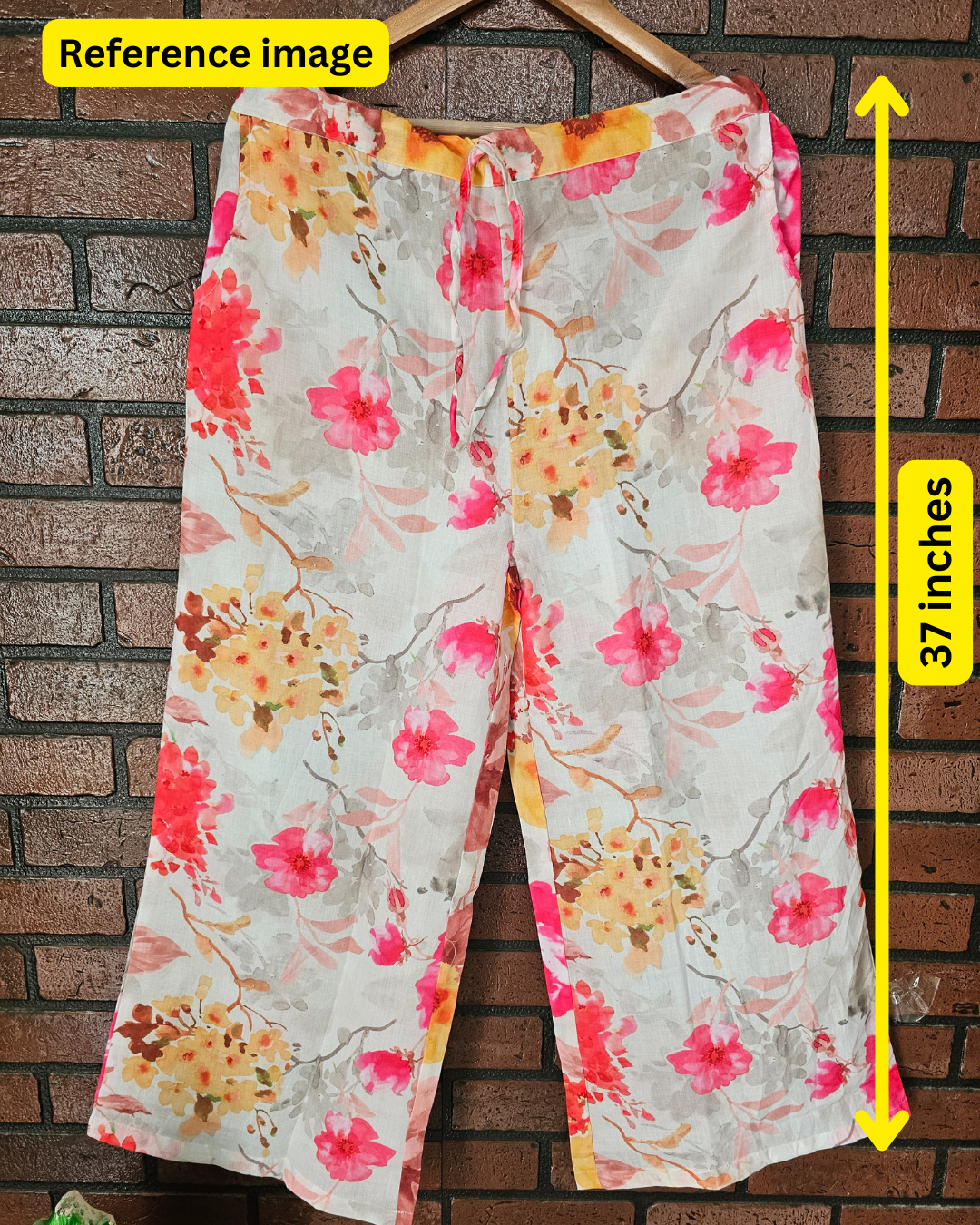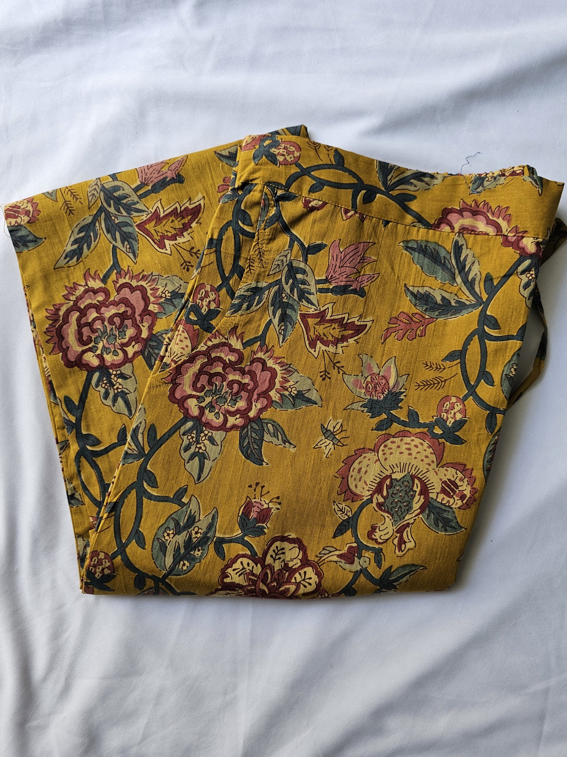 Hand block printed Jaipur soft cotton pant with two side pockets. It's a free size cotton pants which has elastic at back part and tie rope in the front side to adjust according to waist size.