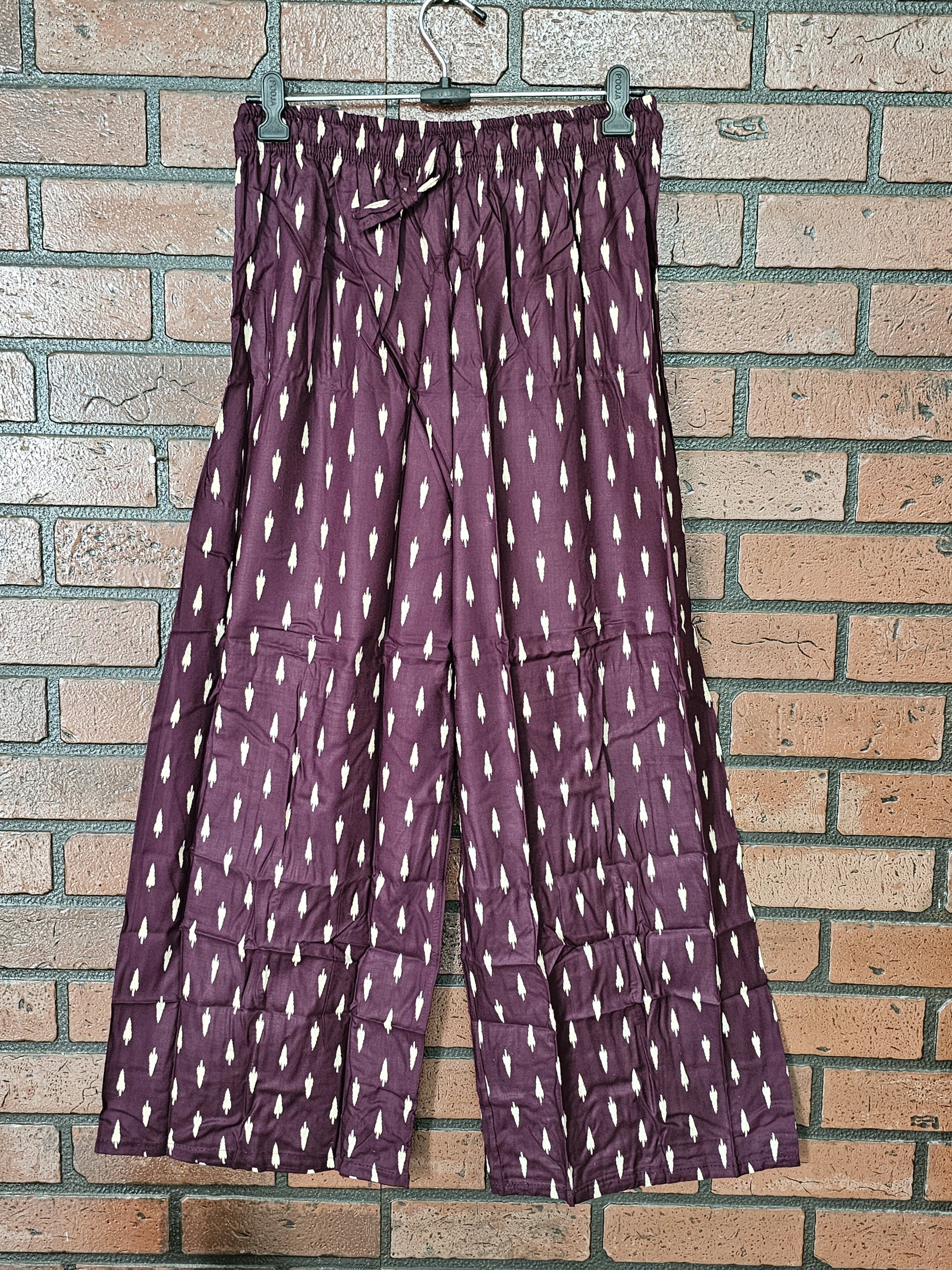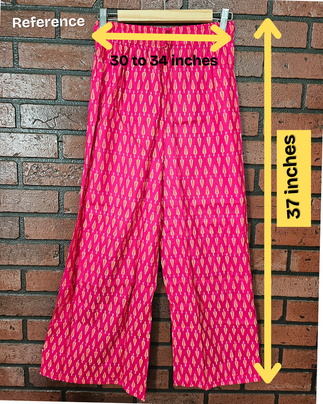 Comfortable Rayon printed palazzo pants with two side pockets and hip tie rope for adjustment.
